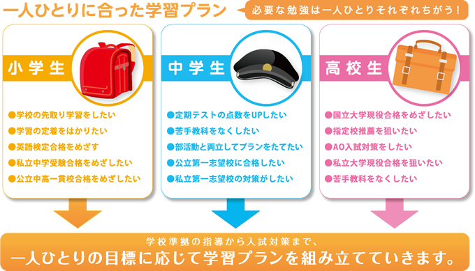 個別指導タクシスでは、一人ひとりに合った学習プランを考えて、勉強のスタイルを改善し、目標の達成に寄り添います。