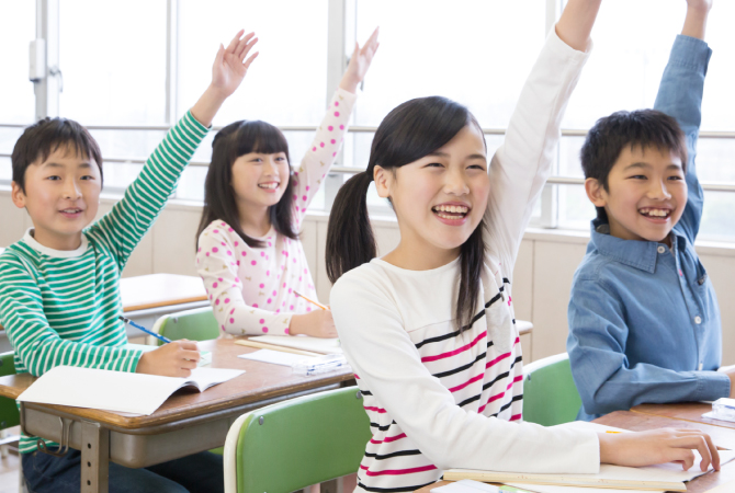 教師の問いかけに生徒みんなが様々な意見を出し合う。